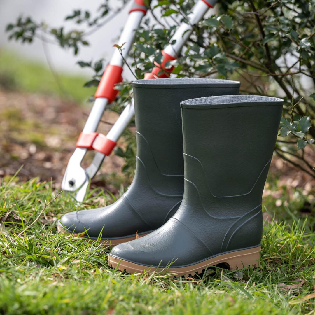 Fabricadas en PVC, ofrecen un calzado resistente, duradero e impermeable para todas tus actividades de jardinería y bricolaje. Para facilitar su colocación, cuentan con una altura de media caña, muy práctica a la hora de calzarlas.