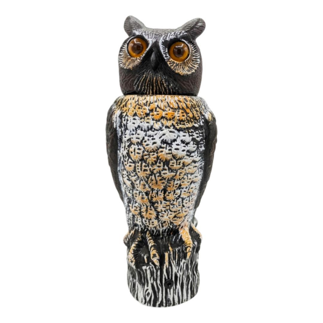 Búho ahuyenta aves y roedores con sonido, cabeza giratoria y ojos reflectantes accionado por el viento, que ahuyenta de manera eficaz aves y otros animales molestos de jardines, cultivos, huertas, etc.
