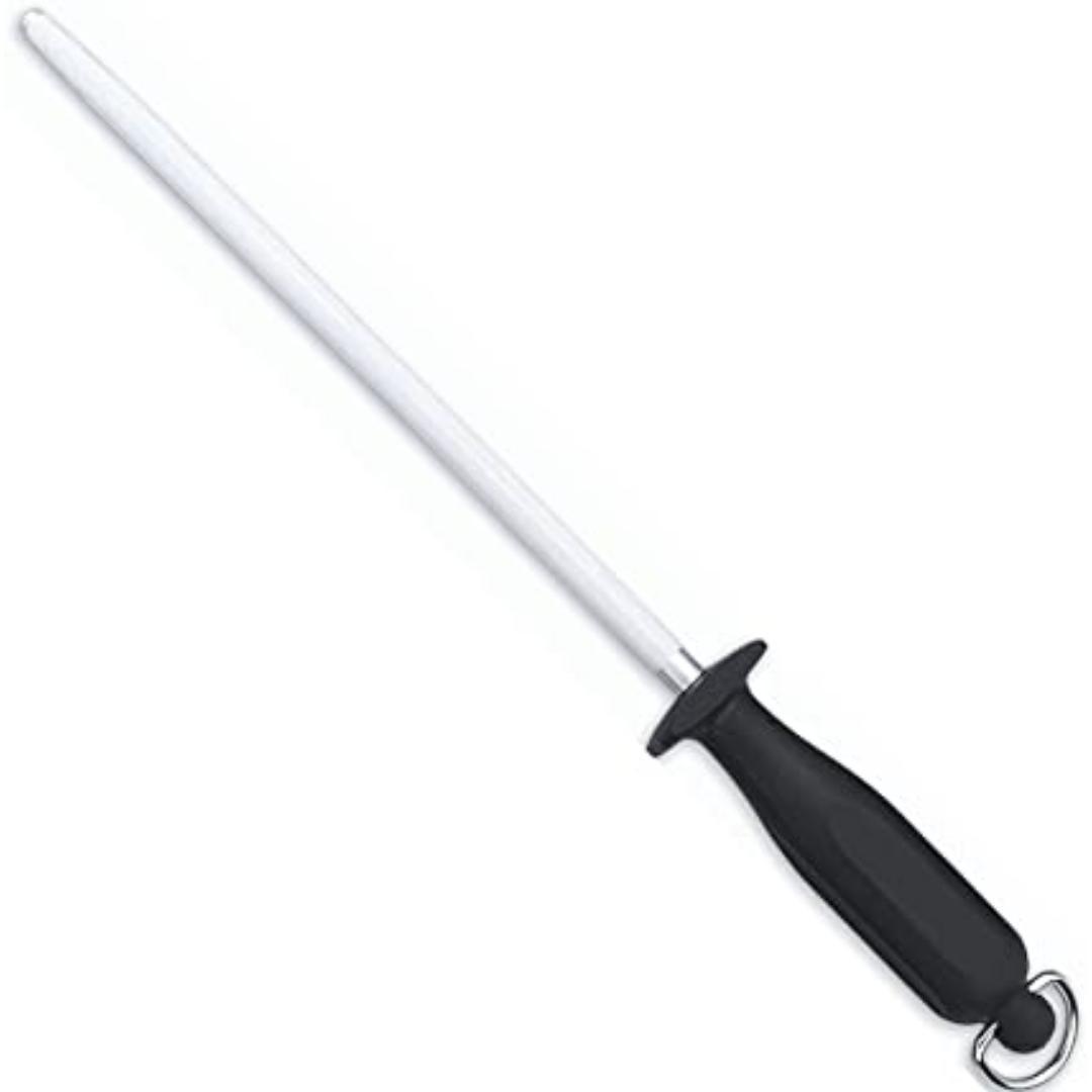 Clásica y elegante chaira de acero al carbón con cromo exterior para un filo parejo y duradero.