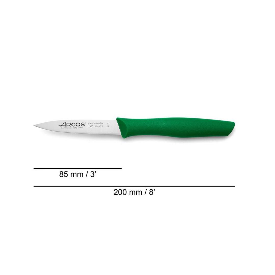 Durabilidad: Su hoja de 85 mm es de acero inoxidable NITRUM®, exclusiva de Arcos, logra que dure más el filo. Además, proporciona mayor poder de corte y dureza.