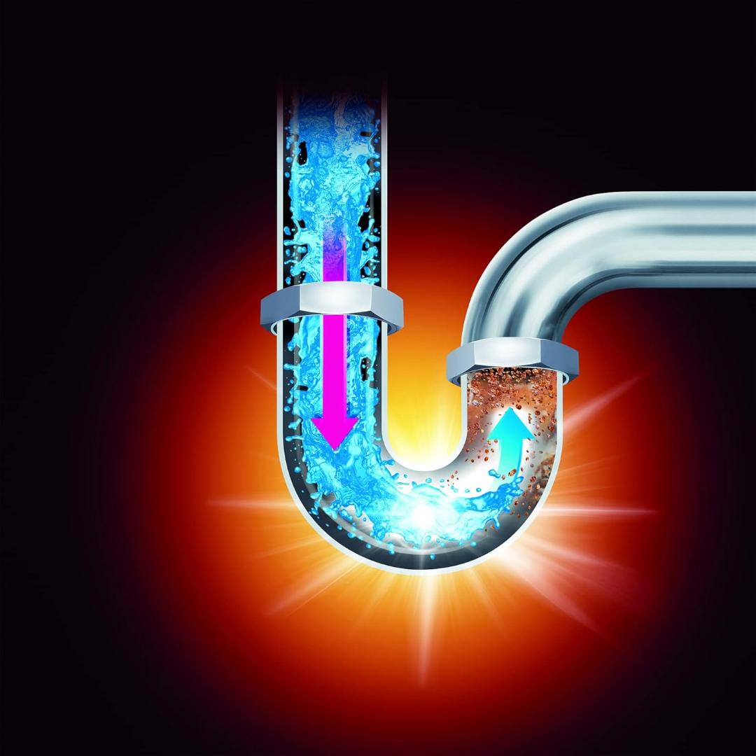 Desatascador de tuberías con fórmula de gel super denso a base de sosa cáustica que consigue la solución más potente y rápida para desatascar por completo todo tipo de tuberías, incluso las de PVC y desagües, de forma cómoda, segura y sin salpicaduras. Sin ácido sulfúrico. No daña las tuberías. Apto para tuberías lentas o atascos severos