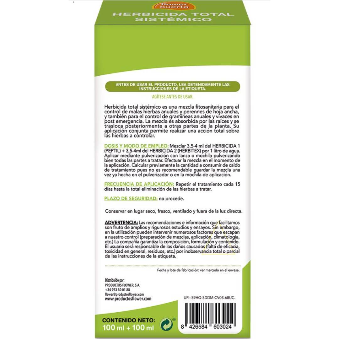El producto HERBICIDA TOTAL SISTEMICO esta compuesto de dos productos: uno el PEPTIL (contra gramíneas) y el HERBITEX (contra malas hierbas de hoja ancha -dicotiledóneas).