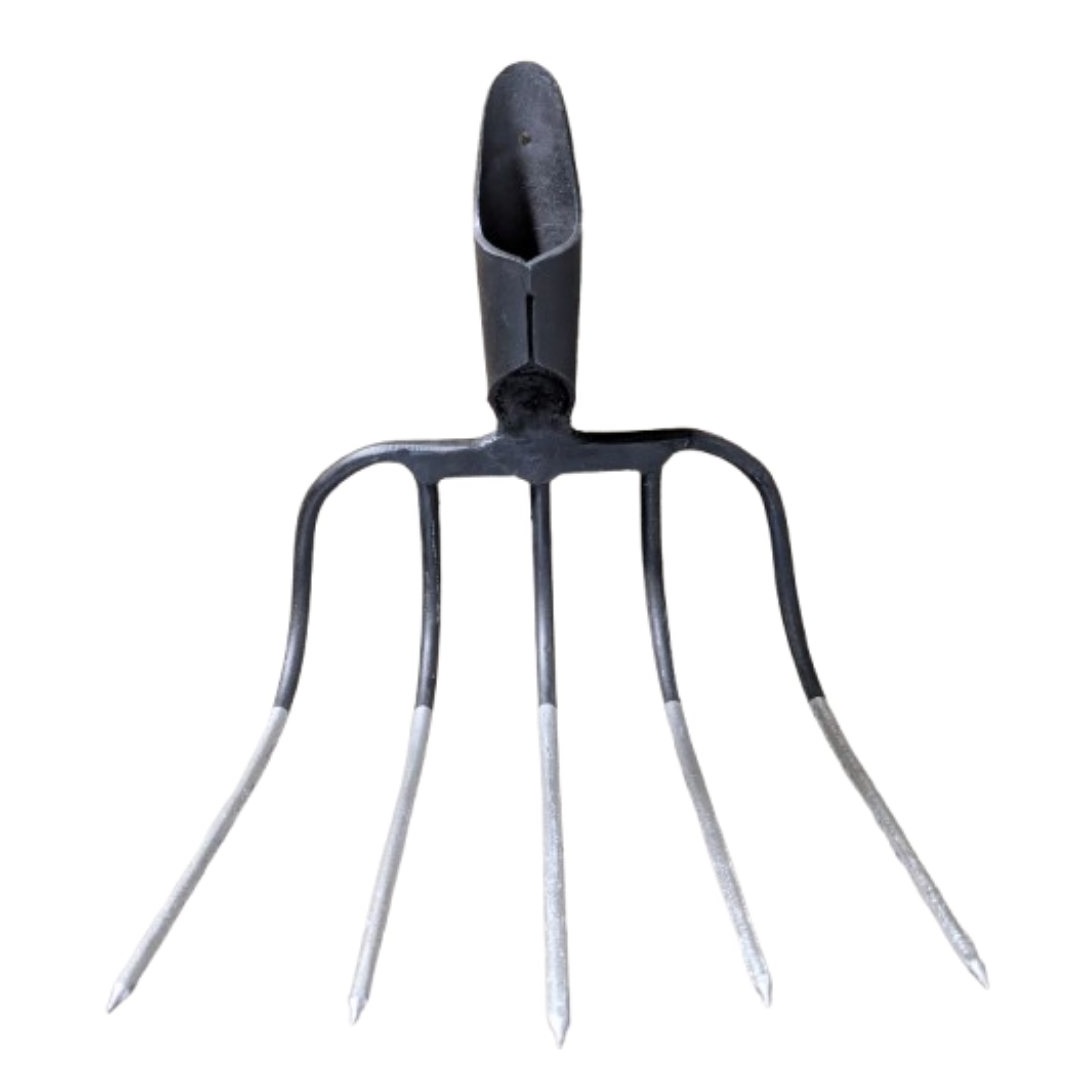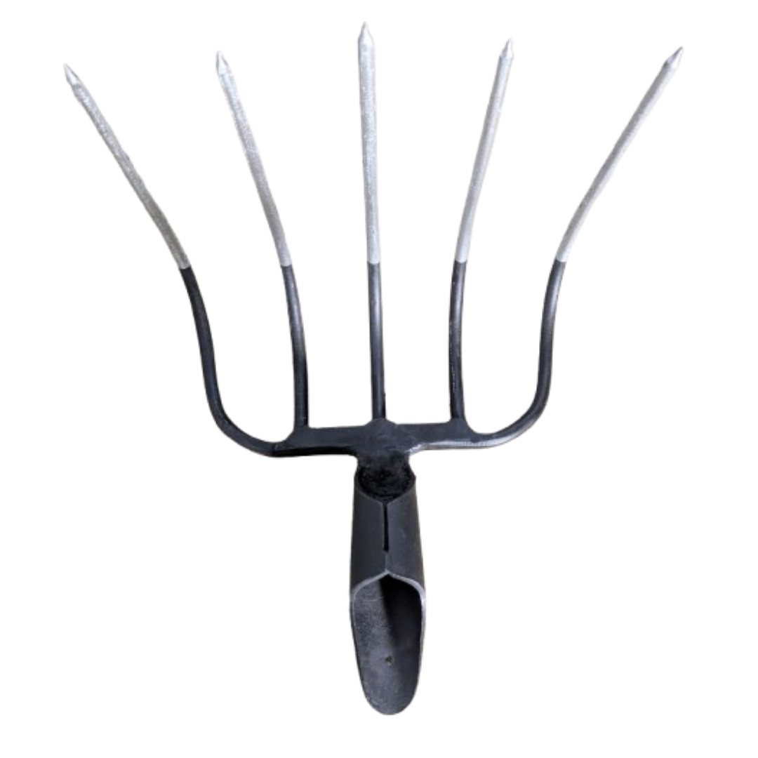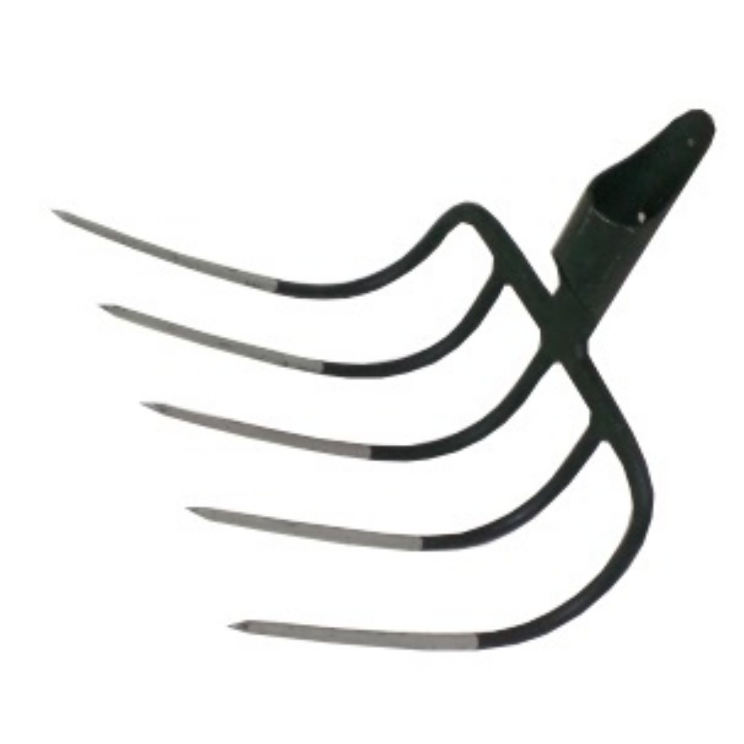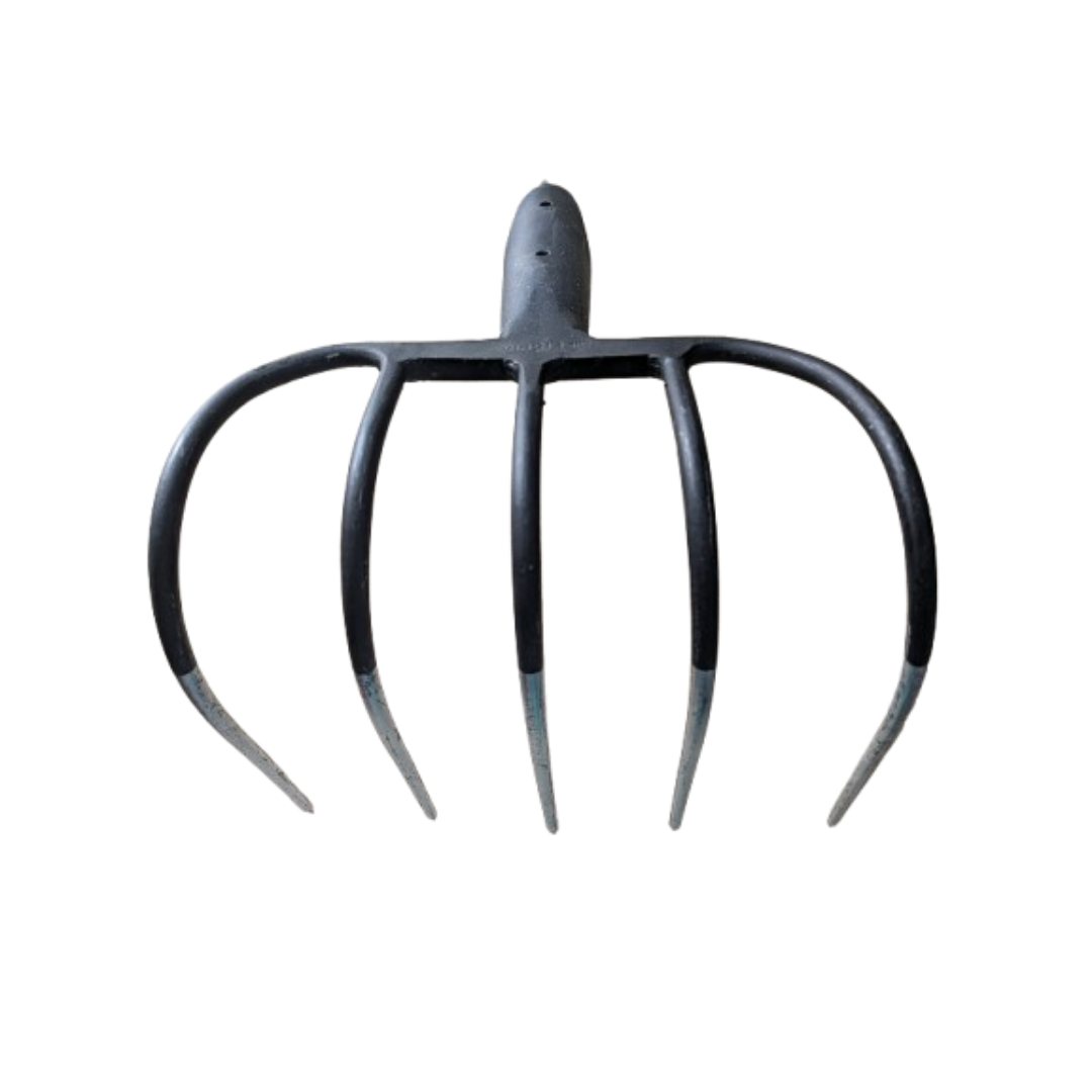 Horca garabato con 5 púas, irrompible, forjada en una sola pieza. Herramienta fabricada en acero especial y tratada térmicamente para una gran durabilidad. Horca especialmente indicada para trasladar heno, estiércol o manipular fardos de forma sencilla. *No incluye mango.