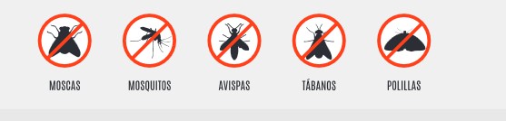 Contra todo tipo de insectos voladores: mosquitos, moscas, avispas, tábanos, polilla de la ropa, polillas y mosquito tigre.
