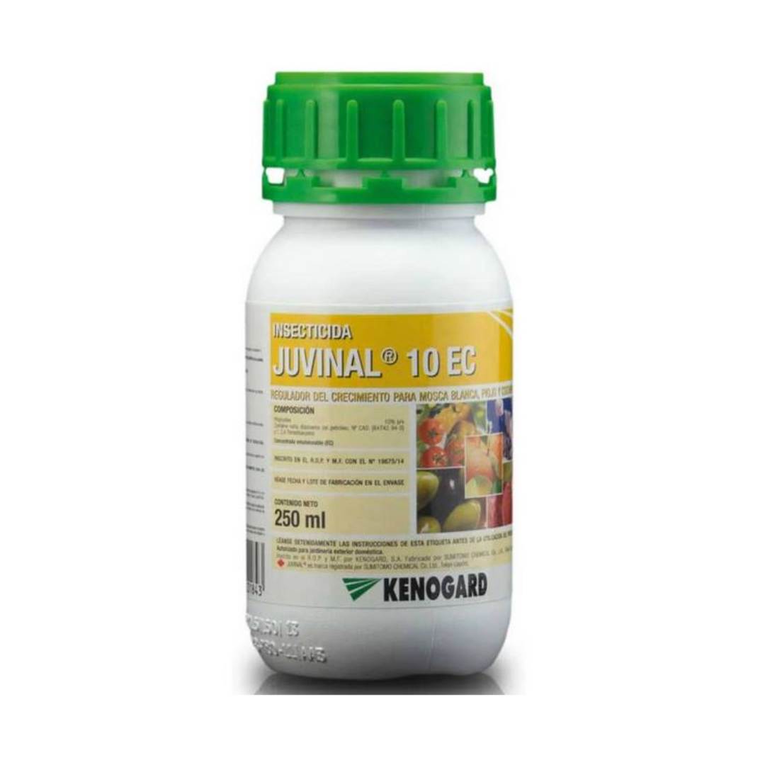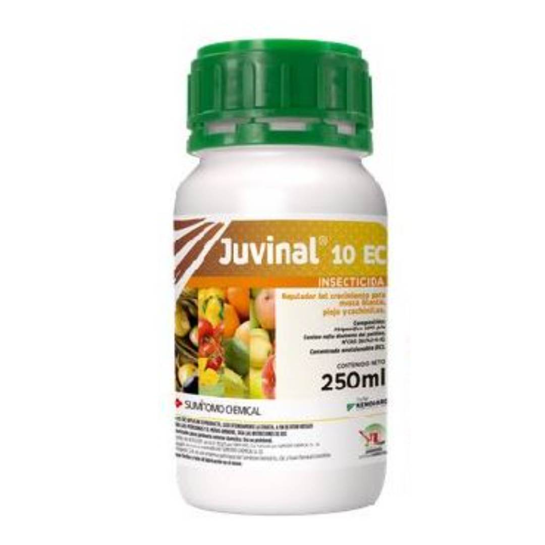 JUVINAL® 10 EC, es un producto mimético de la Hormona Juvenil de los insectos, que muestra su actividad insecticida al interferir en las mudas y la reproducción de los insectos. Actividad por ingestión y contacto. Aplicar sobre los primeros estadios de la plaga.