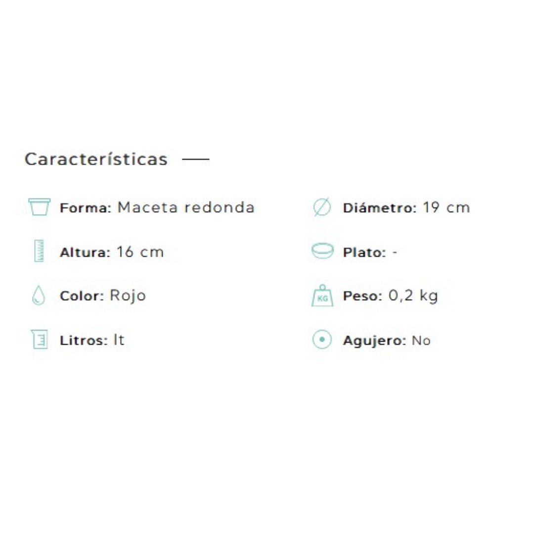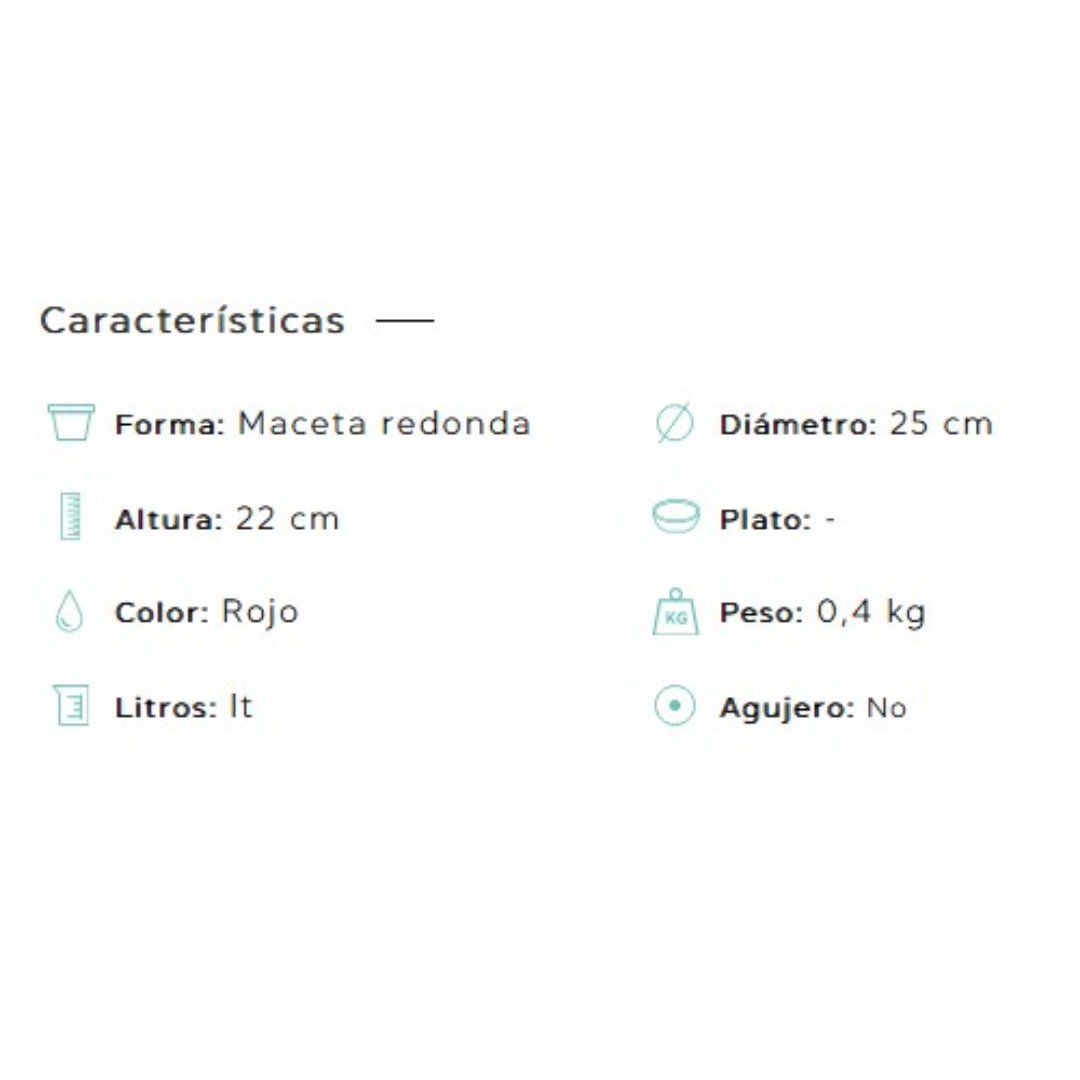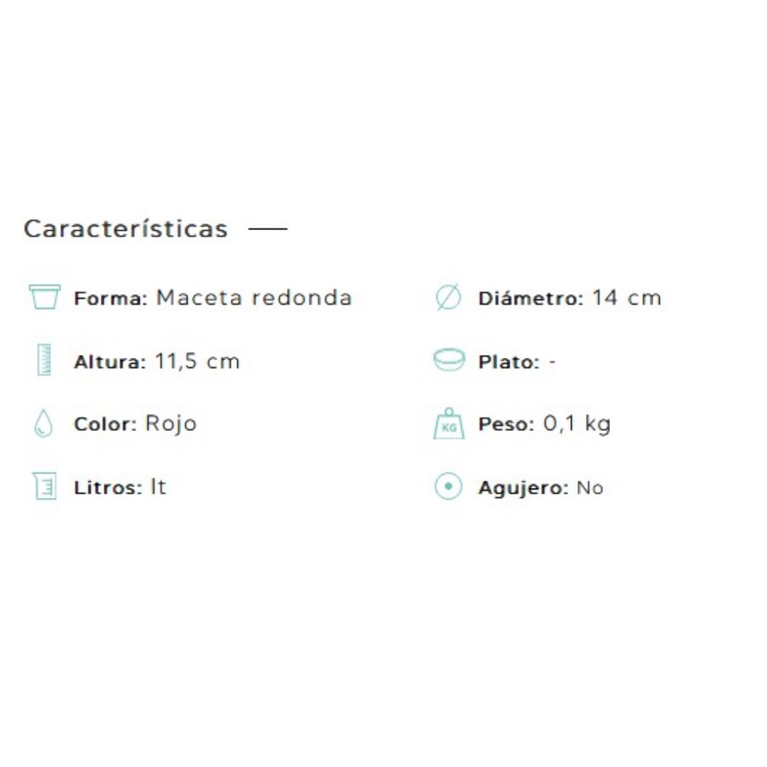 | Medidas Macetas | ø13 x 12cm, ø18 x 16cm, ø25 x 22cm |