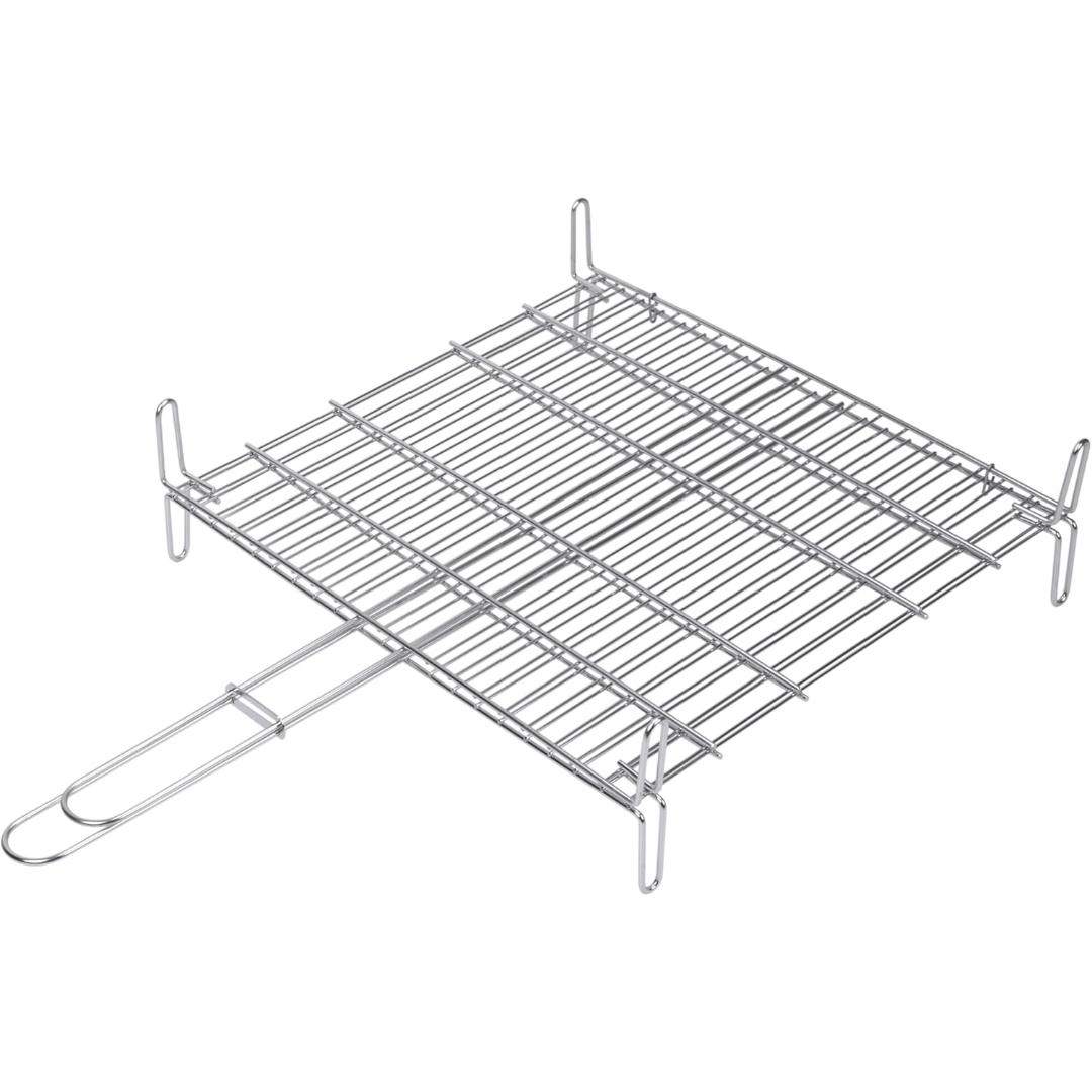 Parrilla doble con patas, muy estable y resistente.
