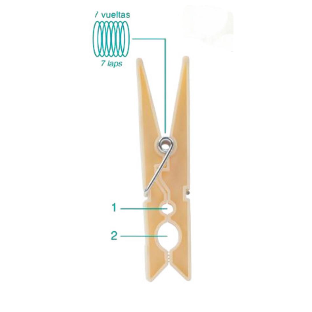 Pinza gigante de 9,5 cm y gran resistencia por su grueso muelle de siete vueltas, ideal para una sujeción perfecta de las prendas más pesadas como abrigos, jeans, mantas o cobijas.