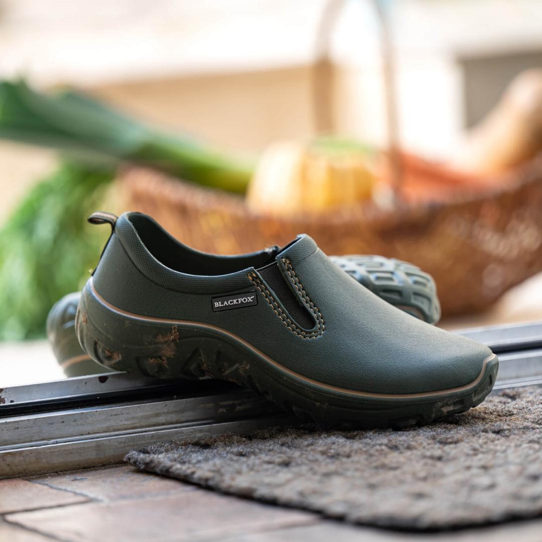 La hebilla trasera y el elástico en la parte superior del empeine facilitan el calce para estar listo en un instante para ir al huerto o al jardín paisajístico.